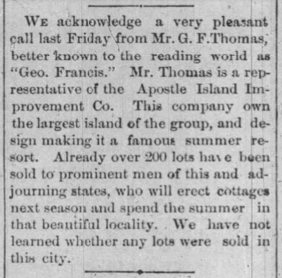 This is the third post in a series featuring The Ashland News items about La Pointe’s infamous Judge John William Bell, written mainly by his son-in-law George Francis Thomas née Gilbert Fayette Thomas a.k.a G.F.T. In today’s post we explore stories about real estate transactions negotiated between Judge Bell and Julius Austrian.