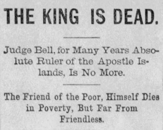 This post is the first of a series featuring The Ashland News items about La Pointe’s infamous Judge John William Bell, written mainly by his son-in-law George Francis Thomas née Gilbert Fayette Thomas a.k.a G.F.T.