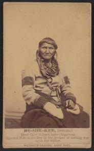Bebiizigindibe (Curly Head) signed the Treaty of 1842 as 2nd Chief from Gull Lake. According to William Warren, he was known as “Little Curly Head.” “Big Curly Head” was a famous Gull Lake war chief who died in 1825 while returning home from the Treaty of Prairie du Chien. The younger chief was the son of Niigaani-giizhig (also killed by the Dakota), and the half-brother of Gwiiwizhenzhish or Bad Boy (pictured). According to Warren, this incident broke a truce between the two nations (Photo by Whitney’s of St. Paul, Collections of the Minnesota Historical Society).
