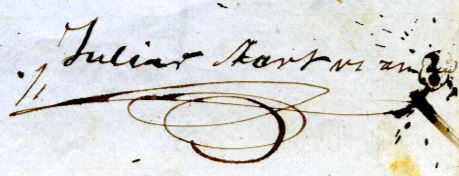 S. Goff came personally before me and being duly sworn according to laws, Says, That, he signed the annexed foregoing power of Attorney from Julius Austrian to James Hughes bearing date on the 30 day of May AD 1853, as one of the subscribing witnesses thereto, and that his Deponents signature thereon and thereto, is genuine, that Deponents was then and still is acquainted with and personally knew the said Julius Austrian who signed the said Power of Attorney, and that he signed the same in the presence of this Deponent at the time the same bears date. To wit: on the 30th day of May AD 1853, and the said Julius Austrian’s signature thereto and thereon is genuine.