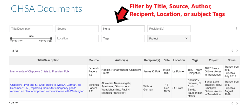 I encourage readers to play around with the filter and search functions to see what’s on there. As of October 1, 2020, there were seventy-one documents in the archive, but this number should increase dramatically in the coming month as I will be adding transcriptions, some of which have never appeared on Chequamegon History.
