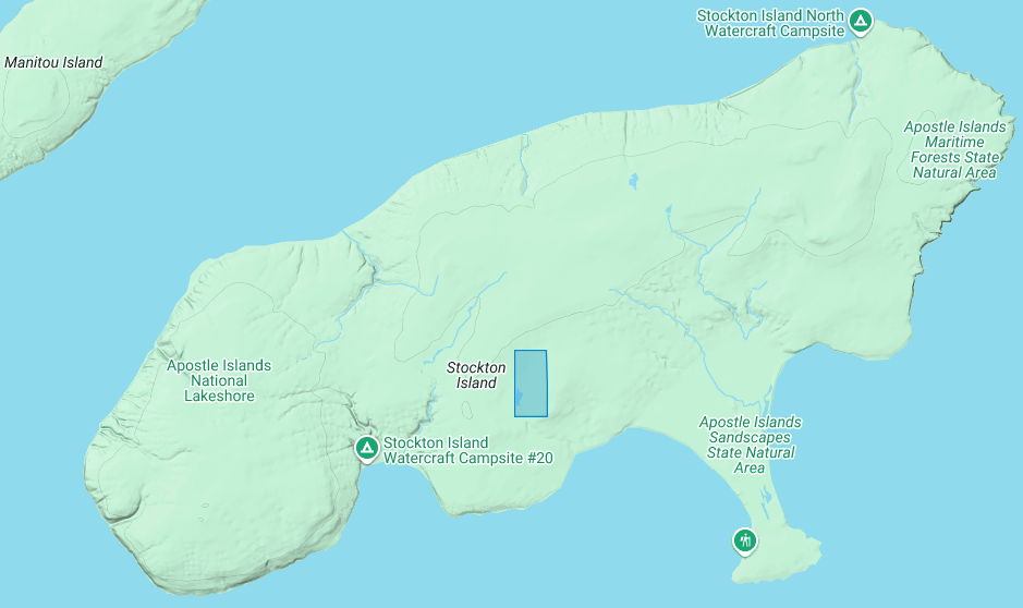The Apostle Islands National Lakeshore contains one allotment (roughly 80 acres) on Stockton Island: