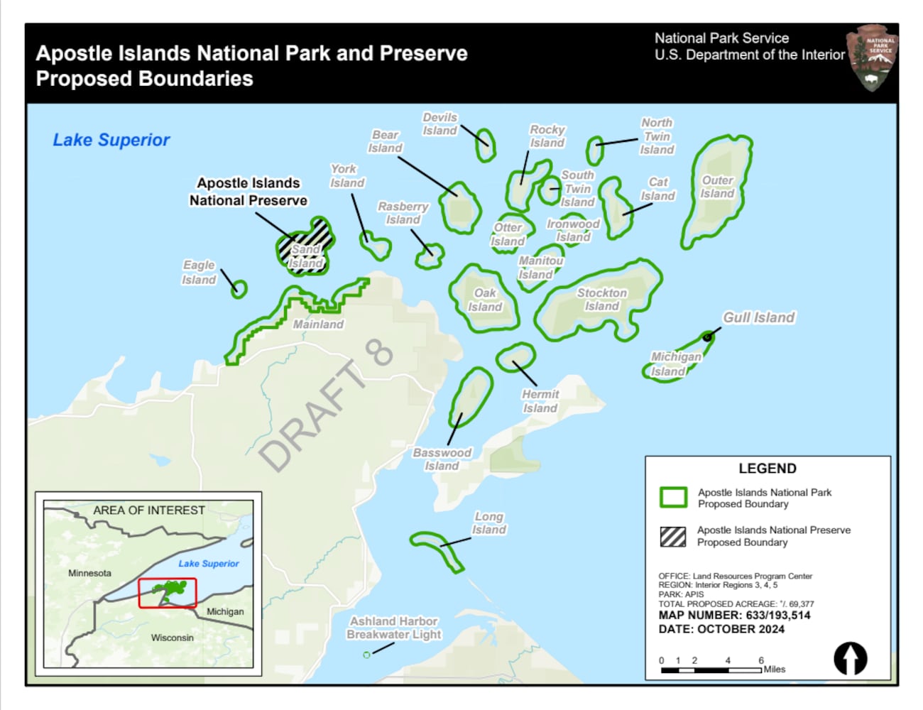 The goal of this post is to raise awareness about how the current Apostle Islands National Lakeshore contains roughly 3,000 acres of tribal lands reserved by the 1854 Treaty of La Pointe, and should consider returning these tribal lands back to the Lake Superior Chippewa before making any changes to become the proposed Apostle Islands National Park and Sand Island Preserve.