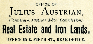 Julius Austrian’s corporate letterhead circa 1888 advertising Allotments for sale.