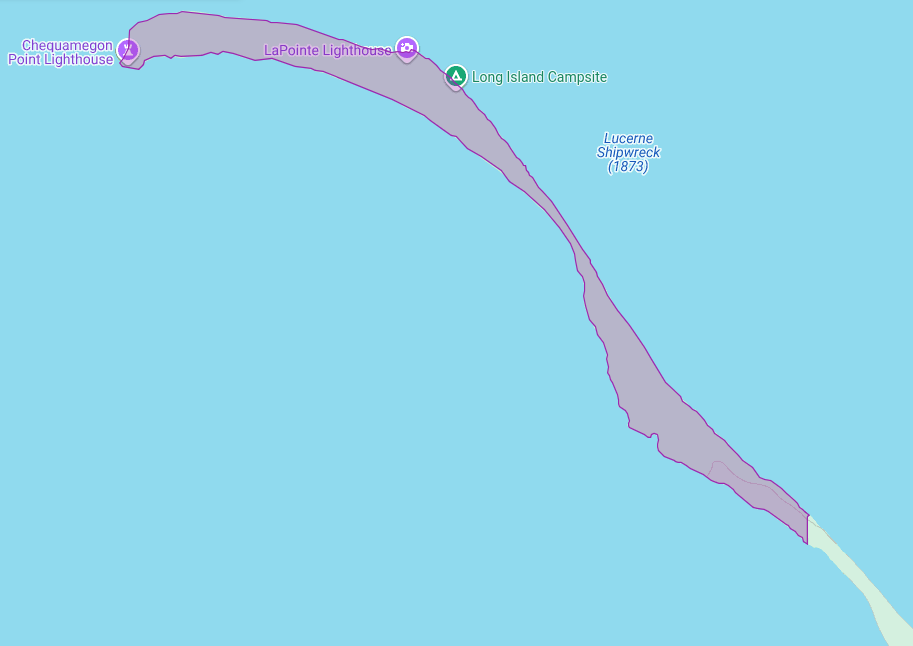 Currently, federal maps of Long Island depict Chequamegon Point to lie outside the Bad River Reservation boundaries.  Ownership of Chequamegon Point has been disputed between Bad River and the Federal Government for many generations since the 1854 Treaty.