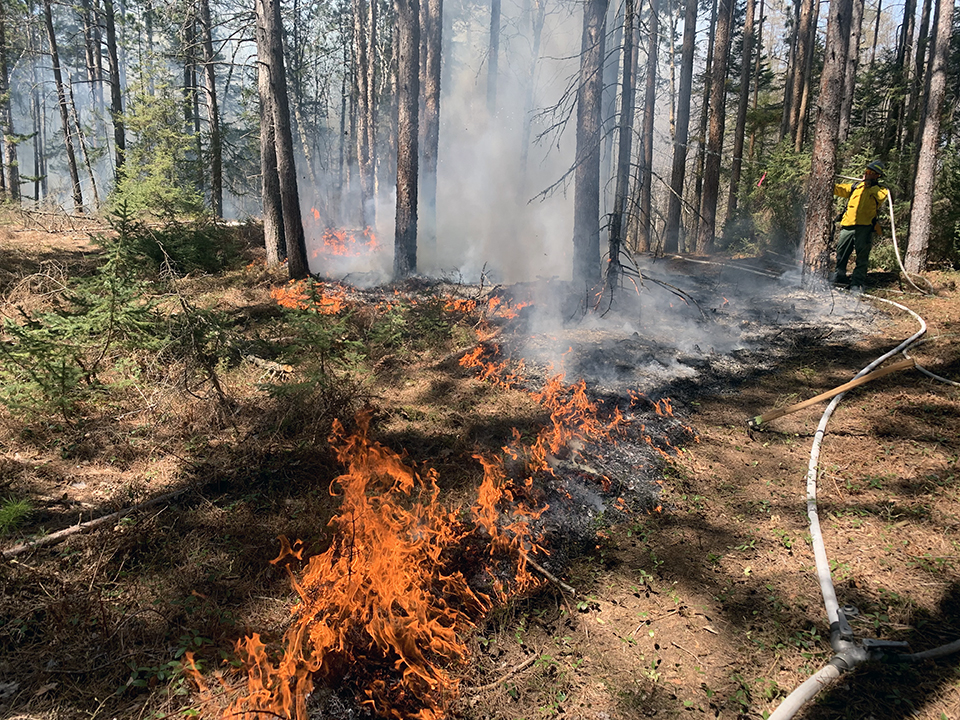 A prescribed fire on Stockton Island conducted by National Park Service and Tribal partners.