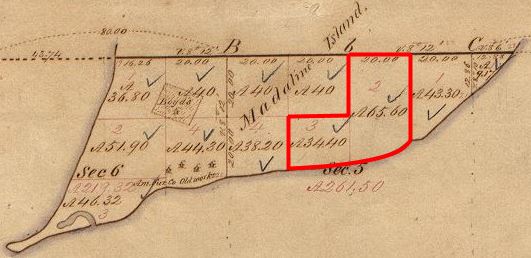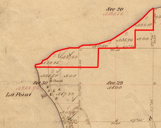 “[…] except a small portion in the North West Corner claimed and enclosed by Edwin Connor, and so much of the South West Corner as is claimed by P. B. Vanderventer, and the enclosure of Barboo & Meletle in the South East Corner”
