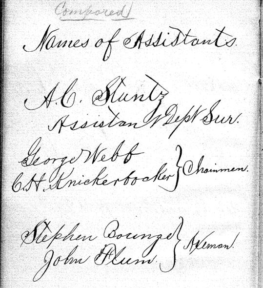 By our contract with Albert Stuntz we were not only to pay him a bonus equal to what he received per mile from Government, but we were also to furnish men for the work and see him through. In accordance with this agreement some eighteen men and boys, to be used as axemen and chainmen, were brought up from Milwaukee who were as “green as gaugers” and as the sequel proved, about as honest. A nice looking lot they were, when landed upon the dock at La Pointe, out of which to make woodsmen. I think I see them now, shining boots,– plug hats, with plug ugly heads in them, (at least some of them had), the notorious Frank Gale, Mat. Ward and one or two other noted characters being of the number. Their pranks astonished the good people of La Pointe not a little, but they astonished Stuntz more. One half day in the woods satisfied them – they were afraid of getting lost. In less than two weeks they had nearly all deserted and the work had to be delayed until a new squad could be obtained from below.
