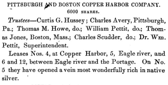 “Pittsburgh and Boston Copper Harbor Company”