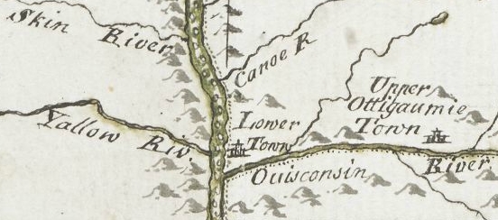 Detail of Prairie du Chien from Carver [Jonathan], Captain. Journal of his travels with maps and drawings, 1766.